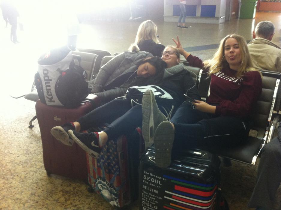 Am Sonntag morgen um 6 Uhr wurden wir nach einer Durchschnittsschlafzeit von 4 Stunden geweckt, eine halbe Stunde später mussten wir auch schon aussteigen und traten zurück in die kalte Luft von Moskau. Mit unseren Koffern hatten wir dann eine 45-minütige Zugfahrt mit dem Aeroexpress vor uns, die die meisten von uns auf dem Boden am Eingang verbrachten. Gegen 7:30 Uhr erreichten wir den Flughafen "Sheremetyovo". Hier hatten wir jetzt siebenstündigen Aufenthalt. Nach gefühlten 10 Stunden Warten konnten wir endlich zum Gate gehen und im Flugzeug Platz nehmen. Der Flug verlief eigentlich ziemlich ereignislos, weil alle nur versuchten den versäumten Schlaf von vergangener Nacht aufzuholen.