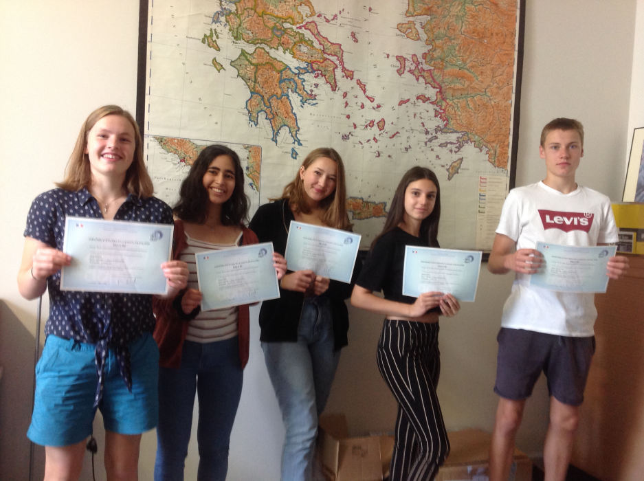 Sechs Schülerinnen und Schüler konnten sich über ihre Sprachdiplome auf dem Niveau B1 und B2 freuen, darunter ebenfalls eine Schülerin des Neuanfängerkurses Französisch in der Oberstufe, die dieses Zertifikat nun als besondere sprachliche Qualifikation ihrem Abiturzeugnis hinzufügen kann.