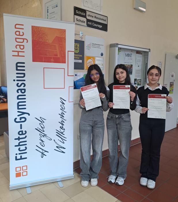 Lavanja Chandra, Nisa Colak und Svilla Joro Namo aus dem Wahlpflichtkurs Biologie/Chemie der Jahrgangsstufe 10 haben erfolgreich an der 1. Runde der Internationalen JuniorScienceOlympiade teilgenommen. Der Wettbewerb stand unter dem Motto „Vorsicht giftig!“. Die Schülerinnen beschäftigten sich sowohl experimentell als auch theoretisch mit Umweltgiften, Körpergiften und Giftpfeilen.