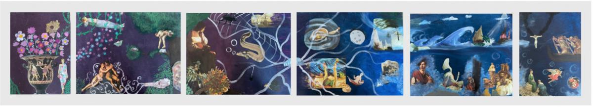 Insgesamt sind vier Leinwandreihen fertig geworden, von denen zwei im Oberstufenbüro zu sehen sein werden. Zwei weitere hängen in den beiden Klassenräumen der siebten Klassen, die an dem Projekt im Rahmen der AG teilgenommen haben.