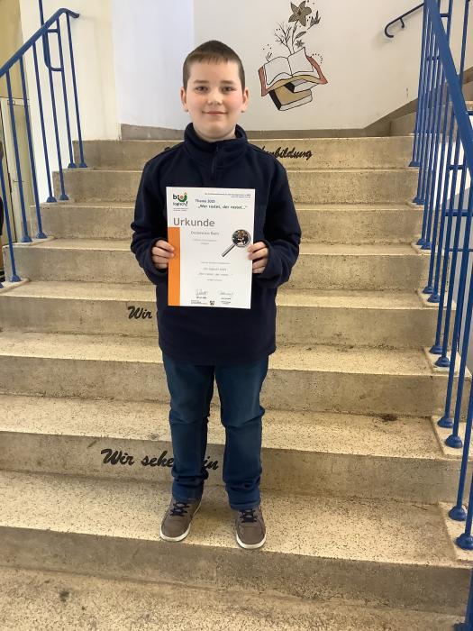 Auch Domenico Bem (Klasse 6), Teilnehmer am Wettbewerb "bio-logisch", erhielt eine Urkunde.
