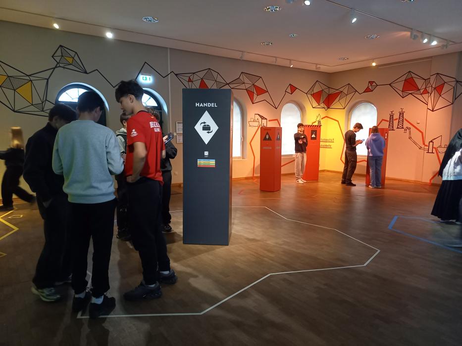 Nach einem eindrucksvollen Besuch im Bergwerk nahmen wir an einem interaktiven Planspiel rund um das Thema ,,Rohstoffe, Regionen und Reichtum“ teil. In dem Spiel wurde unsere Gruppe in jeweils vier kleine Gruppen aufgeteilt, wobei jede Person ein Handy bekam. Es ging darum, uns Schülerinnen und Schülern den Eindruck des globalen Handels mit Erdöl, Holz, Getreide, Gold und Müll hautnah zu vermitteln. In den vier Regionen mit fünf Rohstoffen war das Ziel, möglichst viel Wohlstand für die eigene Region zu sammeln. Allerdings waren die Startbedingungen alles andere als fair, denn manche Länder hatten Goldvorkommen, andere gemischte Ressourcen und eines galt als Müllhalde. Nach jeder Runde entschied die Gruppe über gemeinsame Ereignisse und Konsequenzen: Wem gehören neue Rohstoffe? Wieviel Hilfe bekommt ein Land bei einer Katastrophe?