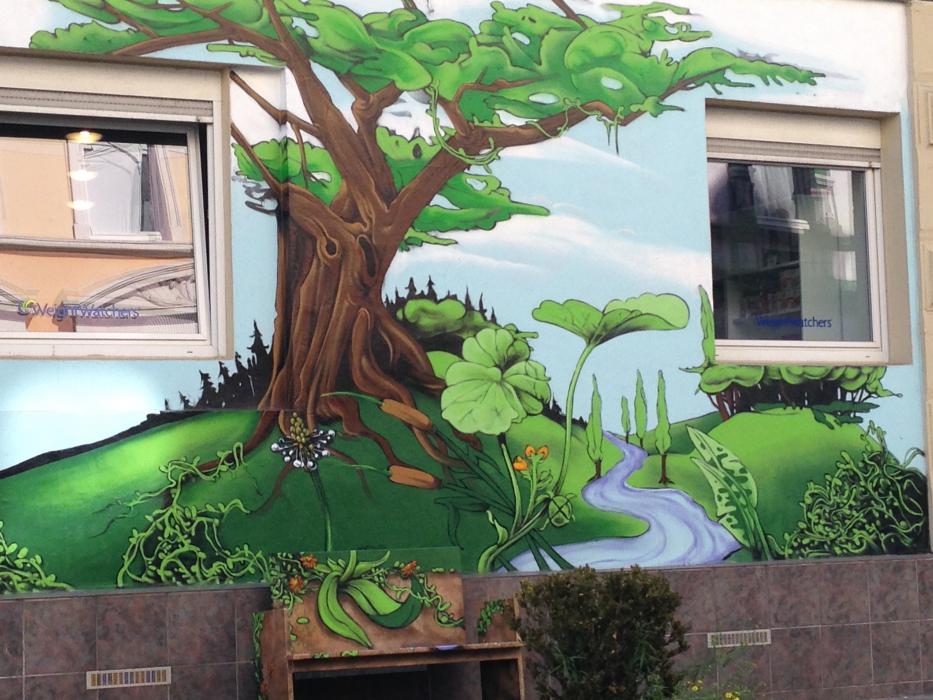 erkannten wir an vielen Fassaden wieder Jugendstilornamente, die der Verschönerung der Fassaden dienen, sondern wir machten auch Bekanntschaft mit den vielfältigen Graffitis, die seit dem Jahr 2011 im Rahmen des „Urban Heroes Festival“ in diesem Stadtteil entstanden sind. Das „Quartiersmanagement Wehringhausen“ entscheidet über die Künstler und deren Projekte im Sinne der Verschönerung dieses Stadtviertels. Auf Schautafeln unterhalb der Graffitis werden diese jeweils erläutert. Unser geführter Rundgang durch die Wehringhauser Straßen gewährte uns neue Einblicke in die Schönheit dieses Viertels, das durch die Graffitis nicht unwesentlich an positiver Ausstrahlung gewonnen hat. Wir waren an Orten in Hagen, an denen wir vorher nie gewesen sind und für die Russen eröffnete sich eine neue Welt. Diese Kunstwerke skizzierten wir in unseren Skizzenbüchern und vervollständigten diese in den sich anschließenden Projektarbeitsstunden am Nachmittag in der Schule. Den Abend verbrachten wir in den Gastfamilien, damit wir unseren Austauschschülern auch einmal einen Einblick in unser Familienleben und den typischen deutschen Familienalltag geben konnten.
