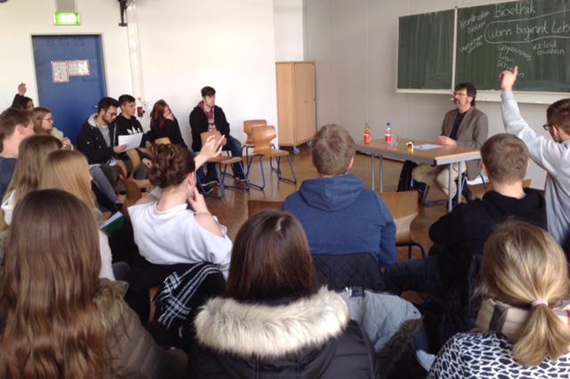 Die Gelegenheit zu einer Diskussionsrunde der besonderen Art bot sich den Schülern der Jahrgangsstufe Q1 vergangenen Freitag: zu Besuch war René Röspel in seiner Funktion als ehemaliger Vorsitzender der Enquete- Kommission "Ethik und Recht in der modernen Medizin" bzw. des "Beirates zur Fragen der Ethik insbesondere in den Lebenswissenschaften".