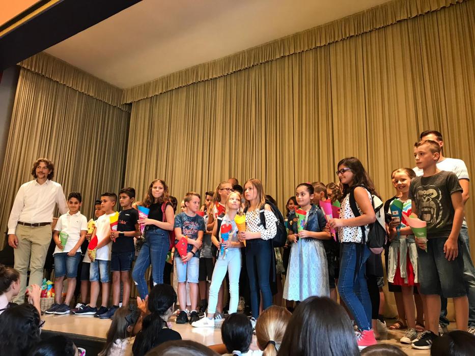 Nach der ökumenischen Feier in der evangelisch-reformierten Kirche am Bergischen Ring wurden die jeweiligen Klassen im Gemeindehaus durch Herrn Hennemann und die neuen Klassenlehrer auf die Bühne gerufen und den Eltern in der Zusammensetzung der Klassen begrüßt und vorgestellt. Die von den ehemaligen Fünftklässlern vorbereiteten kleinen Geschenke sorgten dabei für viele freudige und dankbare Blicke. Nach der feierlichen Veranstaltung gingen die neuen 5er direkt in das Schulgebäude, um die ersten Unterrichtsstunden mit den Klassenlehrern zu verbringen. Am Ende des Schultages holten die Eltern ihre Kinder am Schultor und auf dem Schulhof ab – nach einem im Ganzen gelungenen und aufregenden Tag an der neuen Schule.