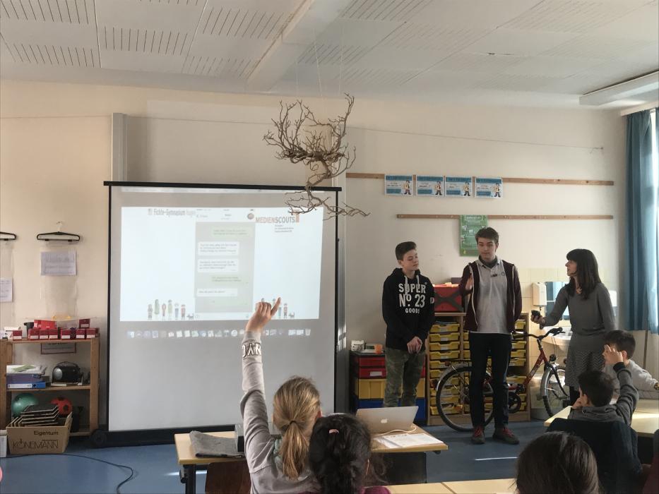 Alle 4. Klassen der Grundschule Goldberg wurden von uns Scouts in Sachen WhatsApp aufgeklärt und konnten ihre Vorstellungen und Fragen in den etwas anderen Unterricht einbringen. Sowohl die Hörfunkjournalistin als auch die Grundschule waren von unserem Besuch begeistert. Frau Wienstroer von WDR5 war der Meinung, dass „Davin und Erik die Beratung für die Grundschüler richtig spannend gestaltet hätten und sich sogar ein Spiel ausgedacht haben, um über WhatsApp aufzuklären.“