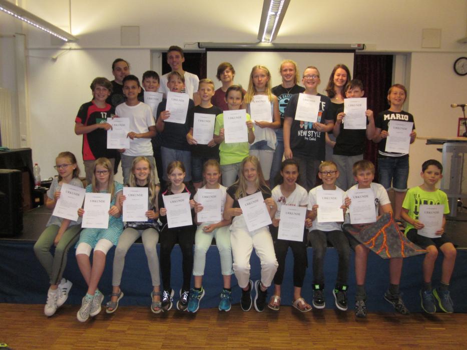 Nachdem die Kinder zunächst ihr jeweils gewähltes Thema auf der Bühne mittels einer Kurzpräsentation vorgestellt hatten, konnten sich die Gäste an den zahlreichen Informationsständen näher über die einzelnen Themen informieren. Die Palette der gewählten Themen war breit gefächert. Die Kinder forschten über Mahatma Ghandi, das Kugelgürteltier, Thailand, Vulkane, Brawls Stars, Basketball und noch vieles mehr. Im Anschluss erhielten die kleinen Forscher ihre verdienten Urkunden.