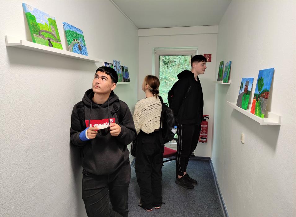 Im Rahmen der Unterrichtsreihe „Landschaftsmalerei“ haben die Kunstkurse der Jahrgangsstufe EF ihre Lieblingsorte in der Natur mit Acrylfarben auf Leinwand festgehalten. Nach theoretischer Erarbeitung des impressionistischen Malkonzeptes sowie gestaltungspraktischen Tipps durfte jeder seine Ideen umsetzen. Entstanden sind eindrucksvolle Arbeiten mit vielfältigen Motiven, u.a. dem Stadtpark, dem Freilichtmuseum oder dem Hengsteysee, die nun in der schulpsychologischen Beratungsstelle „Rat am Ring“ ausgestellt sind. Eröffnet wurde die Ausstellung im Rahmen einer kleinen, feierlichen Vernissage bei der die Schülerinnen und Schüler viel Lob und Wertschätzung ihrer Arbeiten erfahren haben.