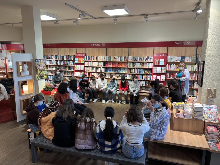 Klasse 5c besucht am Mittwoch, 27.04.2022, die Rathausbuchhandlung in Hagen