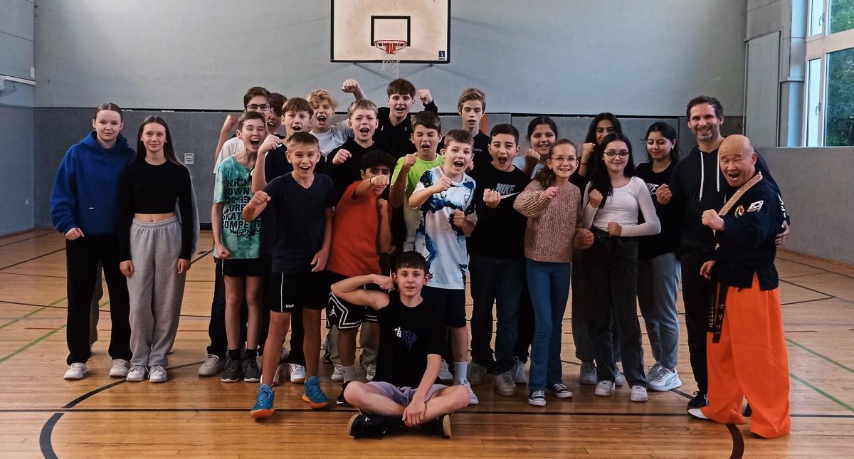 Am 06.11.2023 nahmen ungefähr 50 Schülerinnen und Schüler der Jahrgangsstufe 8 freiwillig an einem Selbstverteidigungskurs teil, der in unserer Sporthalle in zwei Gruppen angeboten wurde.